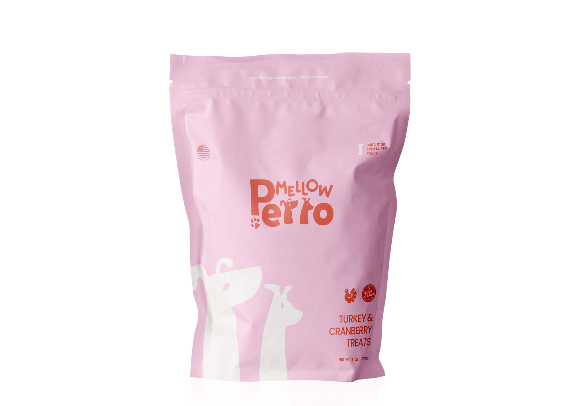 Mellow Perro’s Turkey and Cranberry Paw-Print Treats are a delectable, premium, all-natural treat made in the USA.